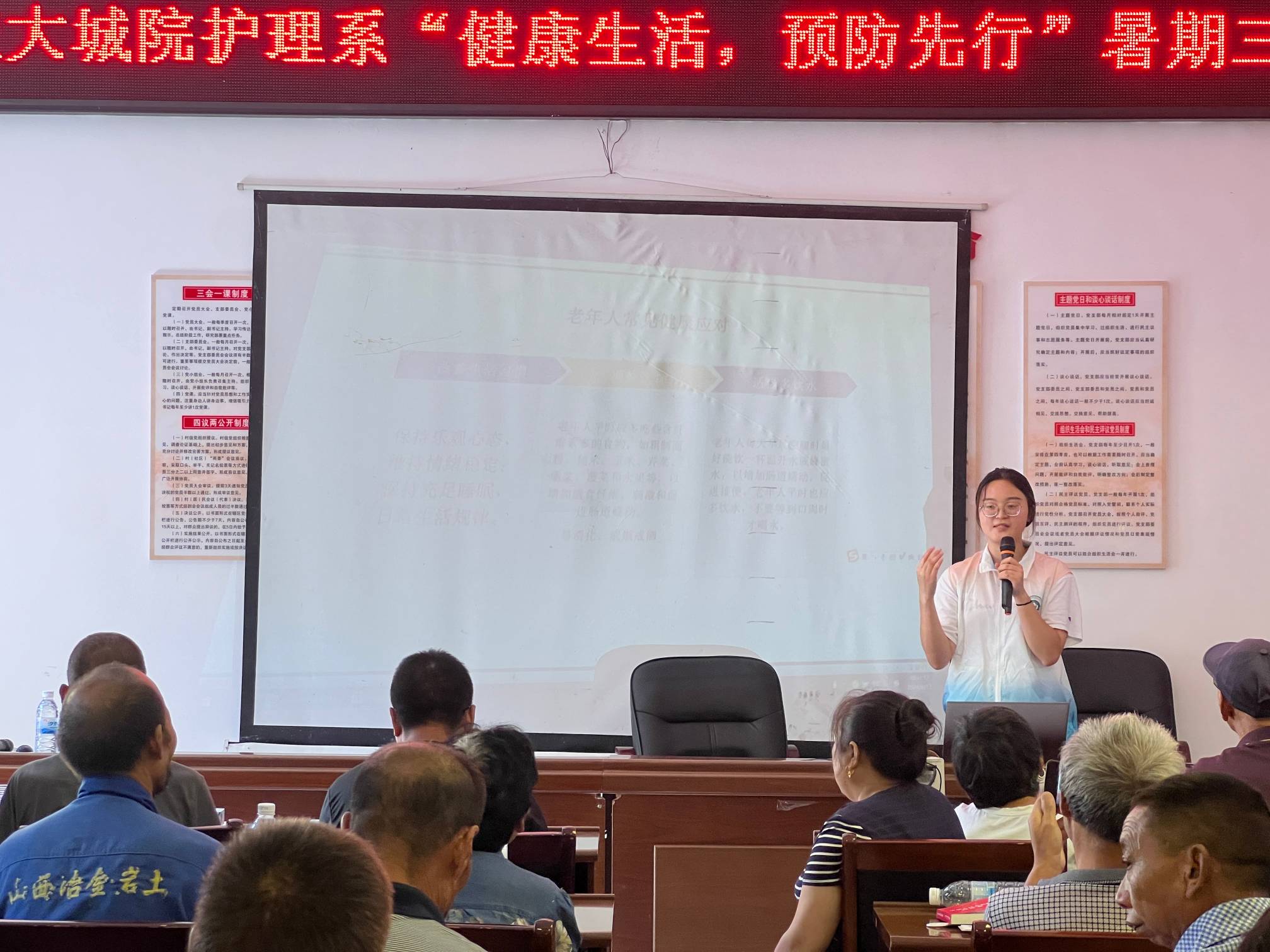 第四部分由南茜同學(xué)講解了“健康防栓/摔”,在8月13日下午的調(diào)查中,我們發(fā)現(xiàn)多數(shù)老年人頻繁遭遇跌倒,這在老年意外傷害死亡原因中占據(jù)了首位。許多功能障礙的人士?jī)A向于長(zhǎng)期留在家中或床上。基于團(tuán)隊(duì)在學(xué)校所學(xué)習(xí)的康復(fù)與護(hù)理知識(shí),我們對(duì)該鎮(zhèn)的殘疾人狀況進(jìn)行了深入分析,并由南茜同學(xué)整理出一套旨在預(yù)防長(zhǎng)期臥床導(dǎo)致的靜脈血栓的簡(jiǎn)單運(yùn)動(dòng)方法,強(qiáng)調(diào)了跌倒防范的重要性,分析了跌倒的內(nèi)外因素,并提出了有效的預(yù)防措施。