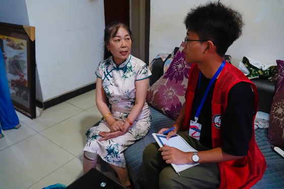 隨后,志愿者們在社區工作人員的引導下,拜訪了社區文藝工作者劉發瓊。作為“最美居民”,她憑借出色的組織能力和對文藝事業的熱愛,成功舉辦了多項社區大型活動。面對重重困難,劉發瓊始終堅守崗位,她的堅韌與執著贏得了志愿者們的敬佩。“當時社區讓我組織大家學龍燈,但在當時很多人是不愿意參加這種浪費時間還沒有回報的東西的。”劉發瓊在談話中回憶道,“為了組織這個活動,我挨家挨戶上門拜訪,召集隊員,安排練習,好在最終成功辦成了。”她表示:“因為熱愛,即使再累我也會去做。”