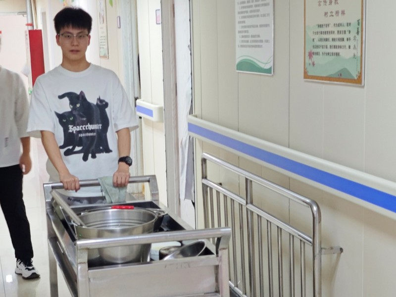 養老院的老人們大多數是七十歲左右的老人,實踐團成員根據每一位老人的飲食需求制定了不同的菜譜并包攬了這七天中的所有午餐的烹飪。如高血壓患者應少吃高鹽高脂肪的食物要多吃高蛋白多膳食纖維的食物、糖尿病患者不能吃高糖的食物要多吃粗糧蔬菜等。此外有多名不能自理的老人因吃飯不方便實踐團成員貼心的喂老人吃飯。