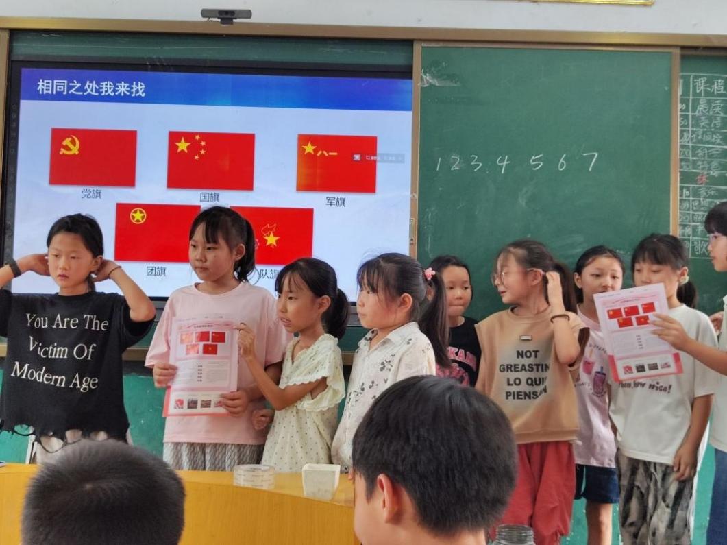 課堂上,支教團成員們以孩子們易于理解的語言,配以生動形象的比喻和故事,深入淺出地介紹了各種旗幟的由來、圖案意義及其背后的歷史故事。在講解國旗時,支教團成員特別強調了五星紅旗的設計寓意:大五角星代表著偉大的中國共產黨,是國家和民族的領導核心;而四個小五角星則象征著全國各族人民緊密團結在黨的周圍,共同為實現中華民族的偉大復興而努力奮斗。通過這樣的講解,孩子們對國旗的象征意義有了更加深刻的理解。