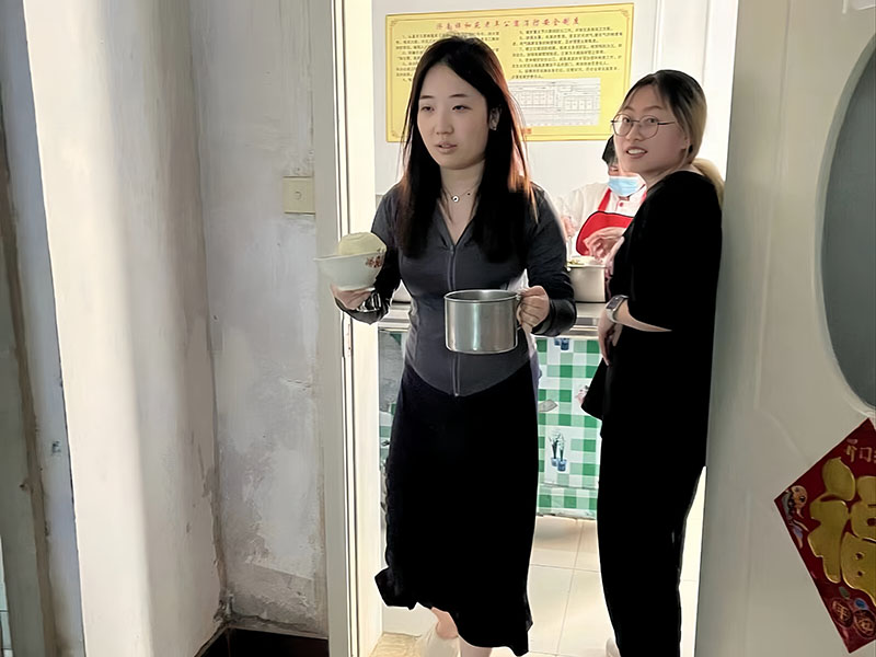 在此次社會實踐活動中,很多老人腿腳不便,實踐團成員幫助工作人員把飯菜端到老人的餐桌上,讓老人們更方便的吃上熱乎乎的飯,有的人掃地,陪著老人聊聊天。養老院內充滿了陽光和歡聲笑語。實踐團成員們打掃工作雖然勞累,但見到老人的笑臉大家就笑得開心,似乎疲勞也跟著消失了。