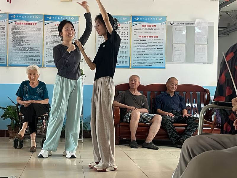 實踐活動的最后一天,在老人的邀請下,走進了他們的娛樂場所,為老人演唱了幾首她們年代愛聽的歌曲以及集體舞蹈等節目,也與老人進行了“歌曲互動”讓他們感受青少年的朝氣和社會的溫暖,這場溫馨的文藝匯演更拉進了實踐團成員與老人們之間的距離。