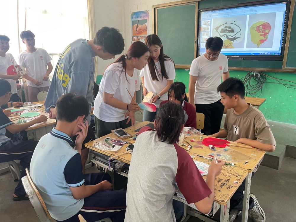 在授課過程中,隊員們向同學們傳授了國畫中的技法。同學們初次接觸國畫,表現出了濃厚的興趣。國畫教學結束后,隊員們接著分享了沂蒙精神的代表人物劉永良的故事,進一步推廣和弘揚了紅色精神。
