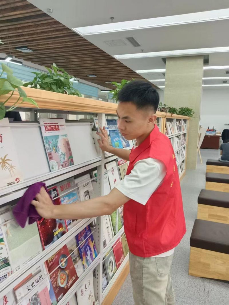 次日早上到達博物館后,實踐團成員與工作人員一起檢查展品的狀況,并對展廳進行清潔和布展。接著,實踐團成員們清理觀眾服務區和工作區,為觀眾提供一個舒適的參觀環境,實踐團成員們工作合作協調,合理分配工作,提高了工作效率。