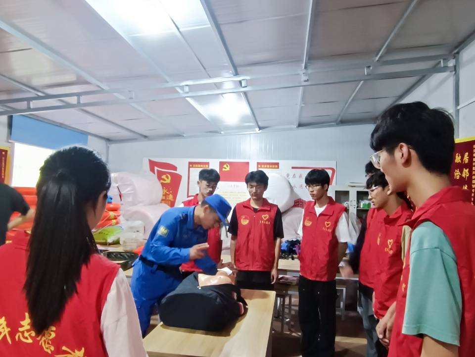 救援隊隊員完成了裝備的整理、器材的搬運工作后,向我們實踐組成員演示了一些專業設施的使用方法。讓我們能夠在后面的突發情況中熟練的使用專業器材和裝備,為我們的安全增添一份保障。