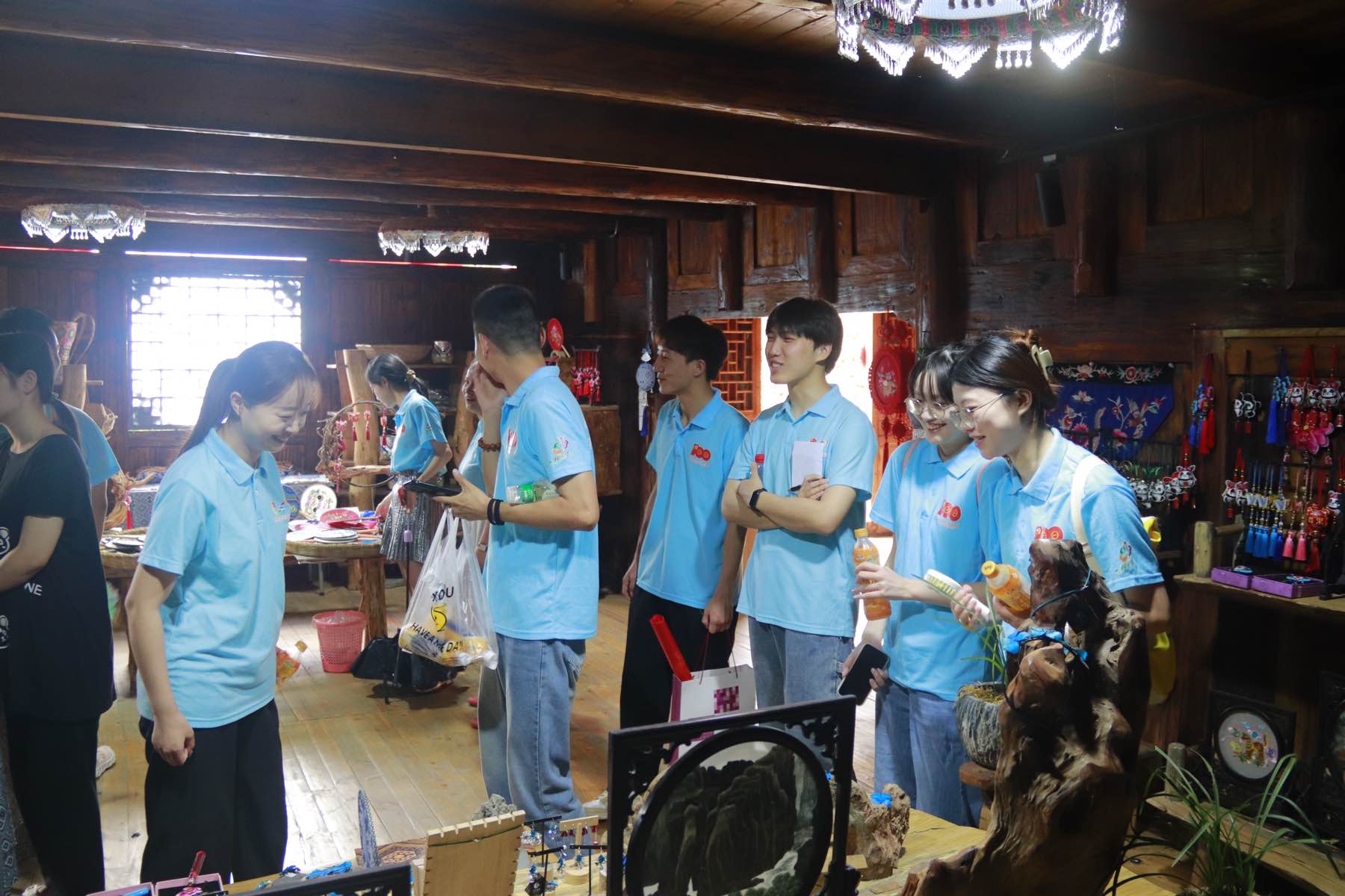 圖為民族團結實踐團成員參觀當地民俗文化產品。共青團重慶科技大學委員會 供圖