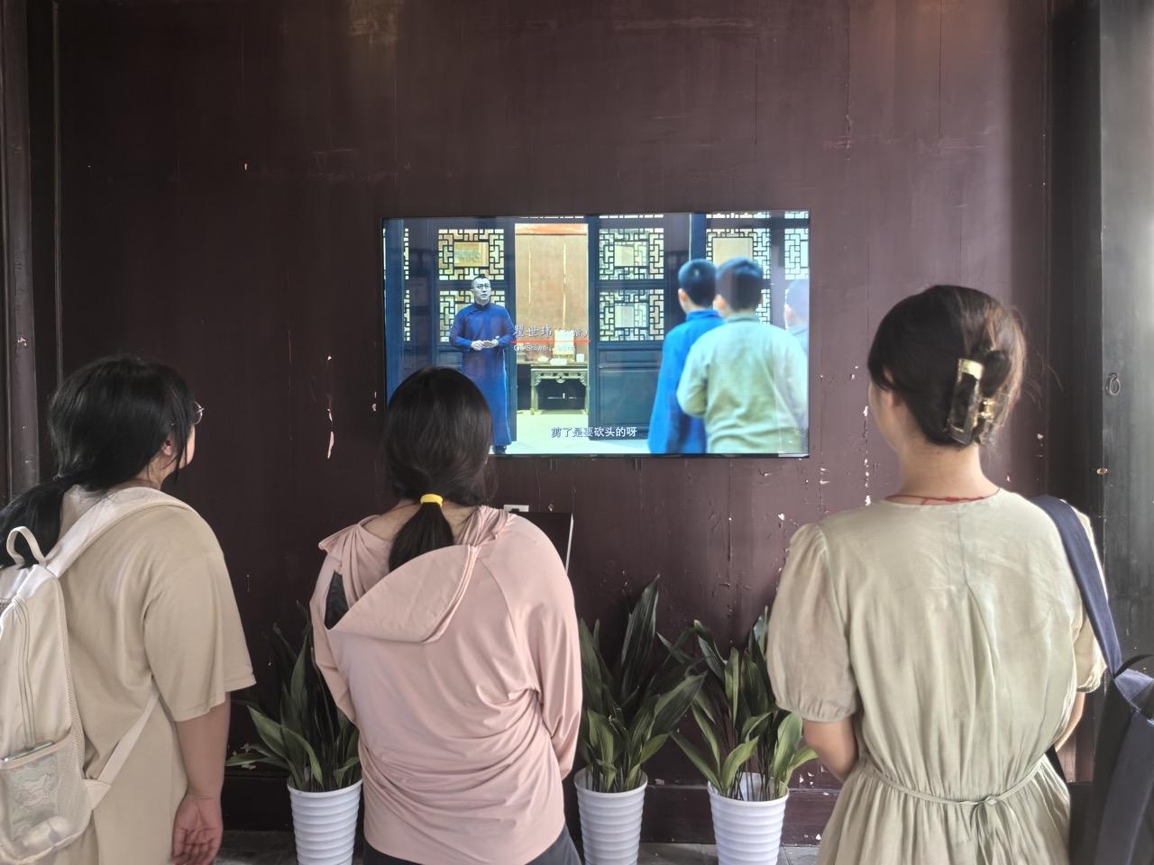 圖為團隊成員在瞿秋白故居內(nèi)觀看影像 程婧堯攝