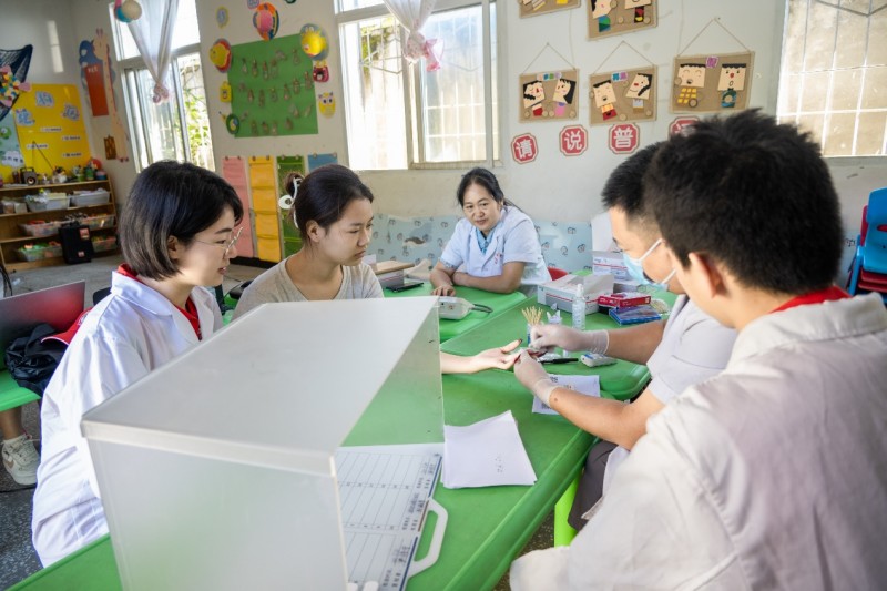 圖為實踐隊參與保障當(dāng)?shù)厝耋w檢。陳東供圖