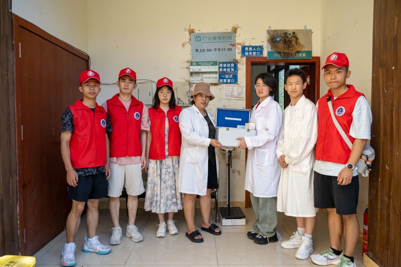 實踐隊向上鄉(xiāng)村衛(wèi)生室捐贈藥物。陳東供圖