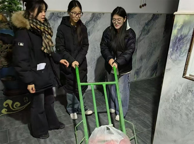 實踐成員一大早來到了養老院,得知養老院需要一批生活物資,包括食品、日用品與保暖用品等,每個人臉上都洋溢著熱忱與期待,迫不及待要為老人們送去幫助,便迅速組織了一場愛心運輸行動,希望能為老人們送去關懷與便利。在搬運過程中,實踐團成員們齊心協力。這張照片不僅定格了實踐團幫助養老院的瞬間,更見證了愛與關懷在人與人之間傳遞。通過這次活動,實踐團用實際行動為老人們帶去生活便利,也讓社會看到了年輕一代的擔當與奉獻。