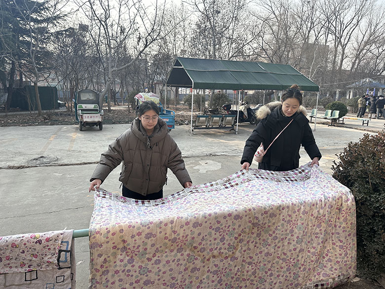在實踐過程中,實踐團成員們來到老人身邊,將他們的被褥一一晾曬。冬日暖陽下,成員們仔細地將被褥鋪開晾曬,細心拍打,讓陽光充分滲透。此次曬被褥,曬走的是潮氣,留下的是真情。實踐團成員用實際行動詮釋著對老人的關愛,也讓尊老愛老的美德在這片土地上傳遞、弘揚。