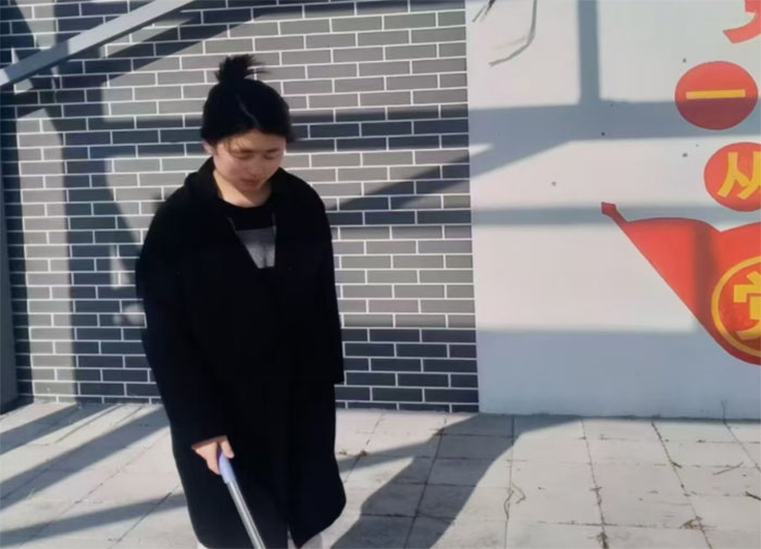(圖為實踐團成員林佳佳向居民分發宣傳資料)