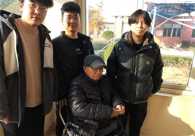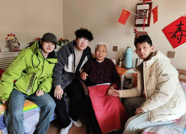 此圖為“夕陽信使”實踐團成員張景昊、許云愷、李永生陪老人聊天