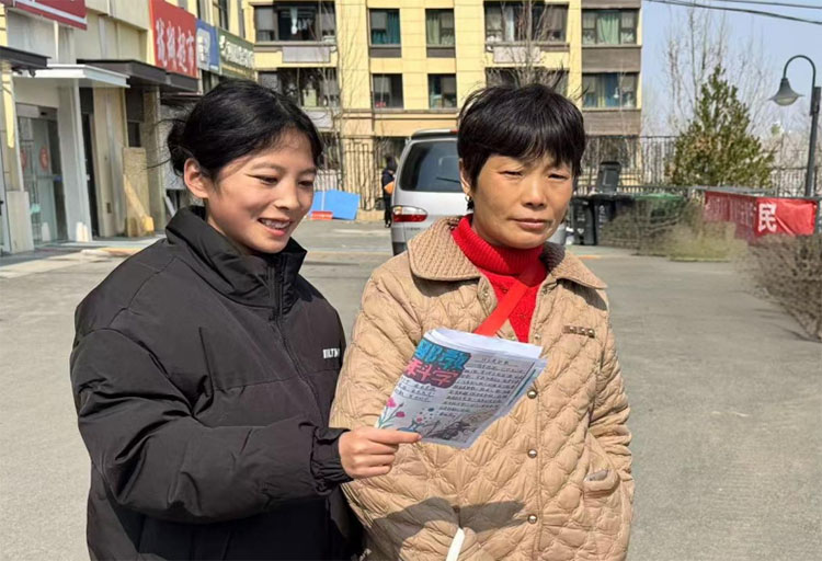 (圖為實踐團成員林佳佳在社區分發宣傳資料)