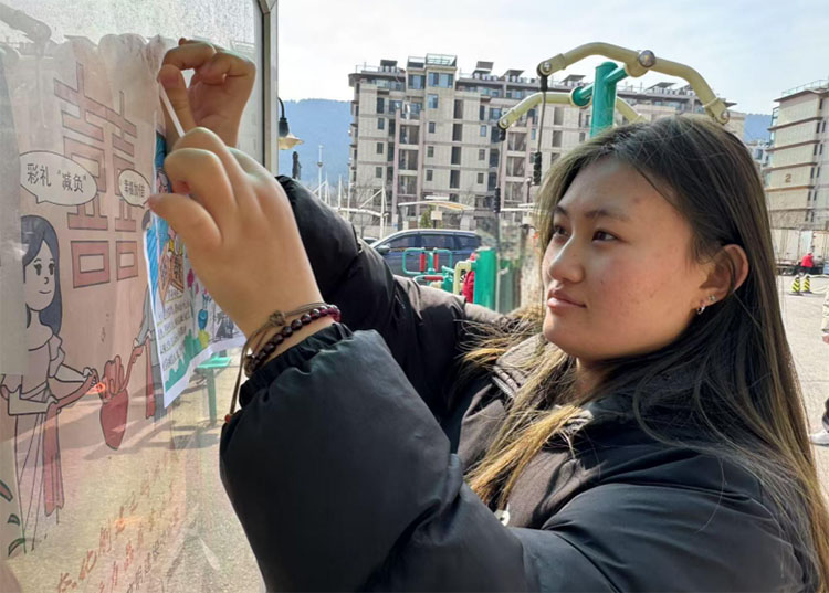 活動結束后,團隊成員與社區的叔叔阿姨道別后將實踐所需的宣傳資料進行整理收納。