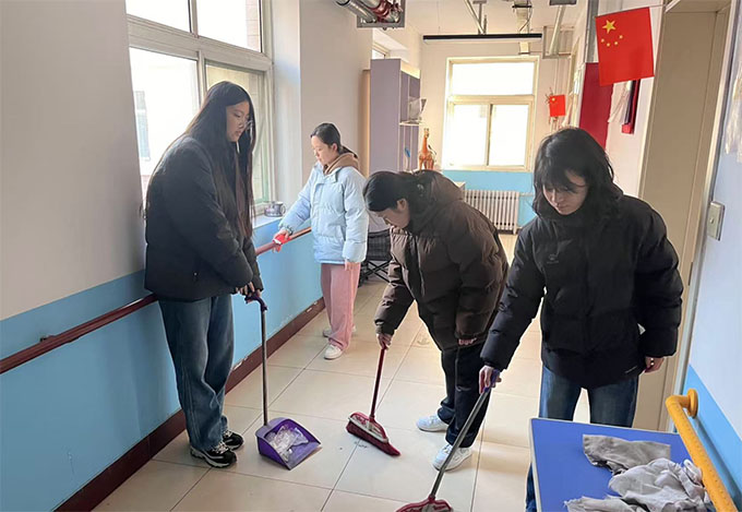 在清掃過程中,志愿者們分工明確,有人清掃地面,有人整理房間角落,不放過任何一個衛生死角。面對冬日嚴寒,他們不畏辛苦,用實際行動踐行著青年人的擔當。院內的老人看到志愿者們忙碌的身影,紛紛投以欣慰的笑容。實踐團成員表示,盡管任務繁重,但能為老人們營造一個溫馨舒適的居住環境,所有努力都值得。