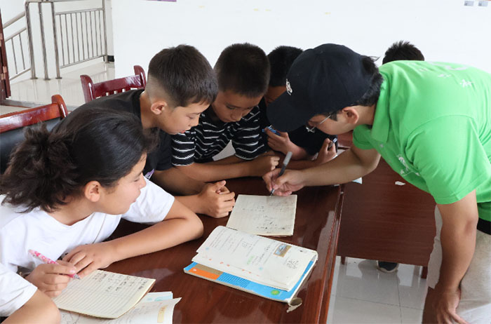 課程結(jié)束后,各位“小老師”分年級(jí)開展課后輔導(dǎo),在強(qiáng)化普通話學(xué)習(xí)的同時(shí),充分兼顧學(xué)科知識(shí),結(jié)合當(dāng)?shù)貙W(xué)校教學(xué)特點(diǎn),耐心解答大家在課堂學(xué)習(xí)中遇到的各種問題。
