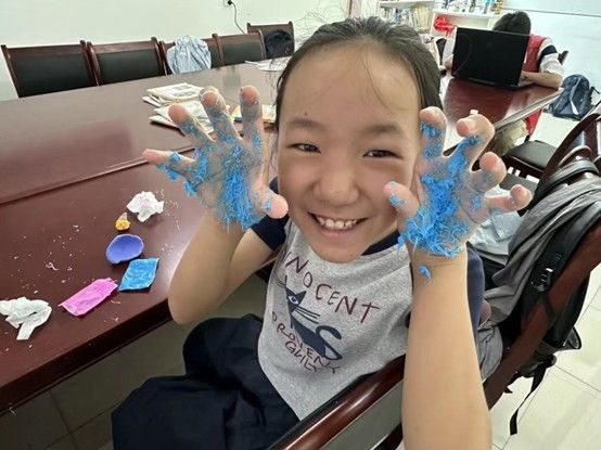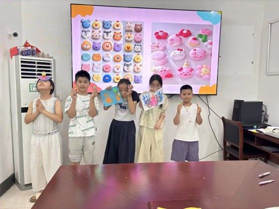泥捏乾坤扇繪春,筆裁錦繡落童真。除了宣傳非遺文化,團(tuán)隊成員為了拉近和孩子們的距離,還開展了許多趣味的手工活動,捏橡皮泥,制作紙扇以及畫簡筆畫。通過揉、捏、塑形,一個個充滿童趣的造型在孩子們的手中出現(xiàn),通過剪裁、繪畫、組裝,完成了簡易紙扇的制作。活動結(jié)束后,團(tuán)隊成員與孩子們共同參與合影拍攝。孩子們手持活動中完成的橡皮泥作品、紙扇及繪畫習(xí)作,與成員們并肩而立。鏡頭下定格了雙方的融洽瞬間,為此次實踐活動留存下直觀而珍貴的影像記憶。
