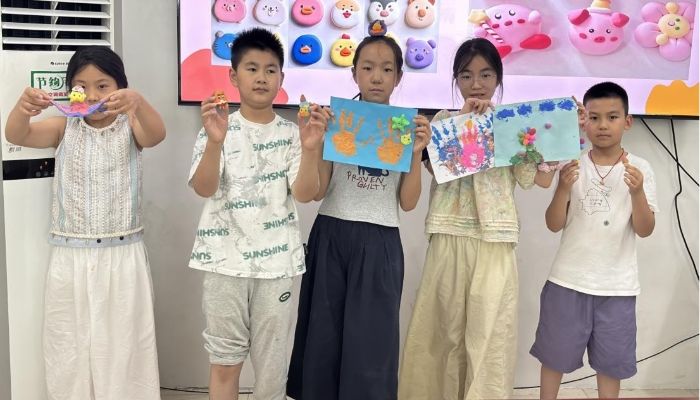 為弘揚(yáng)傳統(tǒng)造物智慧,實(shí)踐團(tuán)隊(duì)開(kāi)展粘土非遺手作體驗(yàn),解析傳統(tǒng)泥塑紋樣的吉祥寓意,讓孩子們領(lǐng)會(huì) "以形載意" 的內(nèi)涵。夏日高溫使粘土黏軟粘手,制作遇阻。團(tuán)隊(duì)用空調(diào)冷風(fēng)調(diào)節(jié),粘土恢復(fù)易塑狀態(tài)。在引導(dǎo)下,孩子們?nèi)嗄蟪鋈皤F、果實(shí)、傳統(tǒng)紋樣擺件等多樣作品。傳統(tǒng)底蘊(yùn)與孩童創(chuàng)意交融,孩子們?cè)趧?chuàng)作中傳承了 "因地制宜,巧思善作" 的工藝智慧,感受著傳統(tǒng)美學(xué)與手工創(chuàng)作的奇妙聯(lián)結(jié)。