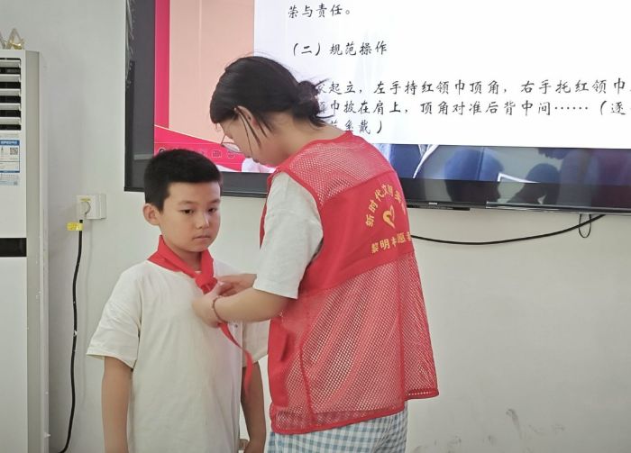 圖 4團(tuán)隊(duì)成員教孩子系紅領(lǐng)巾