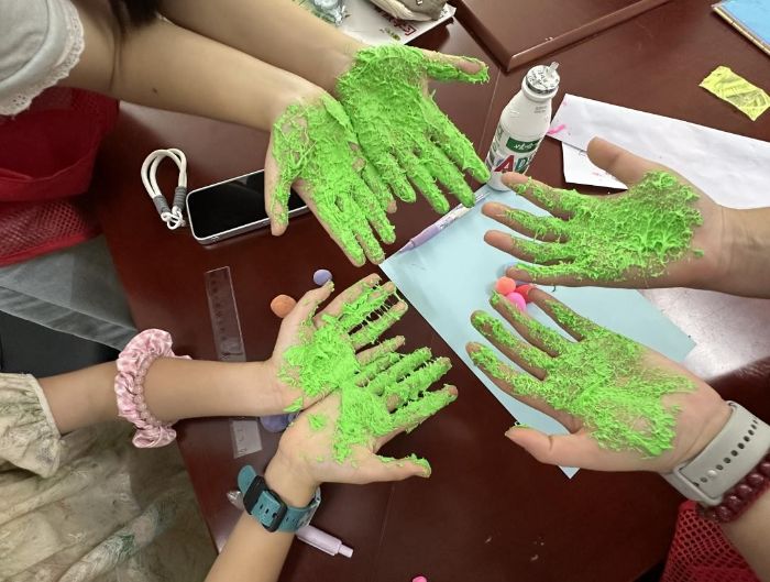 圖 2由于天氣太熱黏土黏在學(xué)生和團(tuán)隊(duì)成員手上