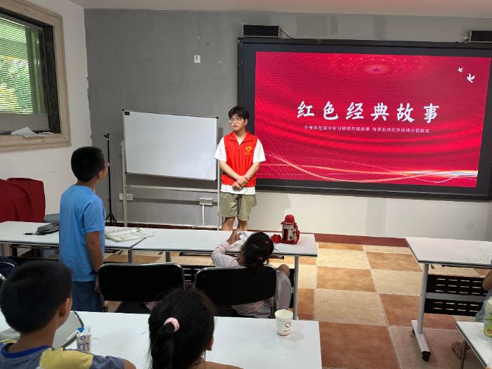 7月初,團(tuán)隊(duì)成員走進(jìn)連云港市海州區(qū)河濱社區(qū)和西鳳社區(qū),為社區(qū)的孩子們帶來了一場(chǎng)別開生面的紅色故事宣講會(huì)。為了讓歷史更鮮活,團(tuán)隊(duì)成員播放了《小沙東海戰(zhàn)》紀(jì)實(shí)動(dòng)畫短片,讓孩子們通過家鄉(xiāng)的影像,直觀感受那段發(fā)生在身邊的烽火歲月。在宣講和觀影后,成員高崢杰設(shè)計(jì)了互動(dòng)問答,小朋友們踴躍參與,爭(zhēng)相舉手發(fā)言。活動(dòng)結(jié)束時(shí),剛上小學(xué)一年級(jí)的樂樂小朋友激動(dòng)地說:“原來我們連云港的大海里也有這么勇敢的叔叔!我要記住他們,長大也要保護(hù)我們的花果山和連島!”看著孩子們純真而堅(jiān)定的眼神,隊(duì)員們深刻感受到港城革命精神薪火相傳的希望與力量,也更加堅(jiān)定了用青春守護(hù)童心、傳承地方紅色基因的責(zé)任擔(dān)當(dāng)。
