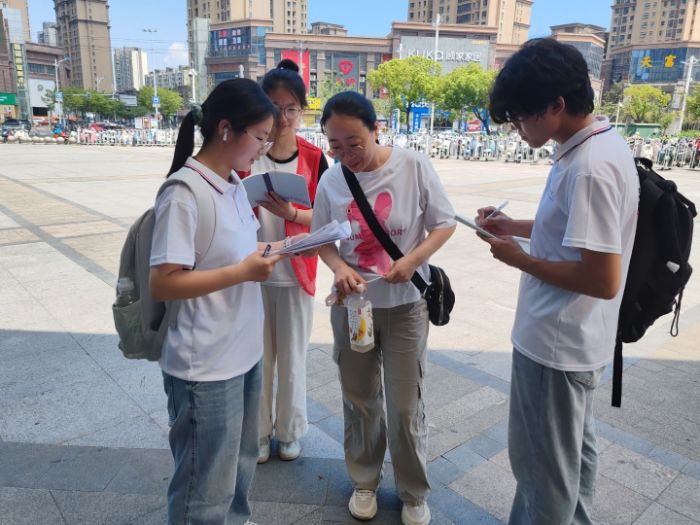 圖為隊員在國購商場外開展問卷調研。王蓉蓉 供圖