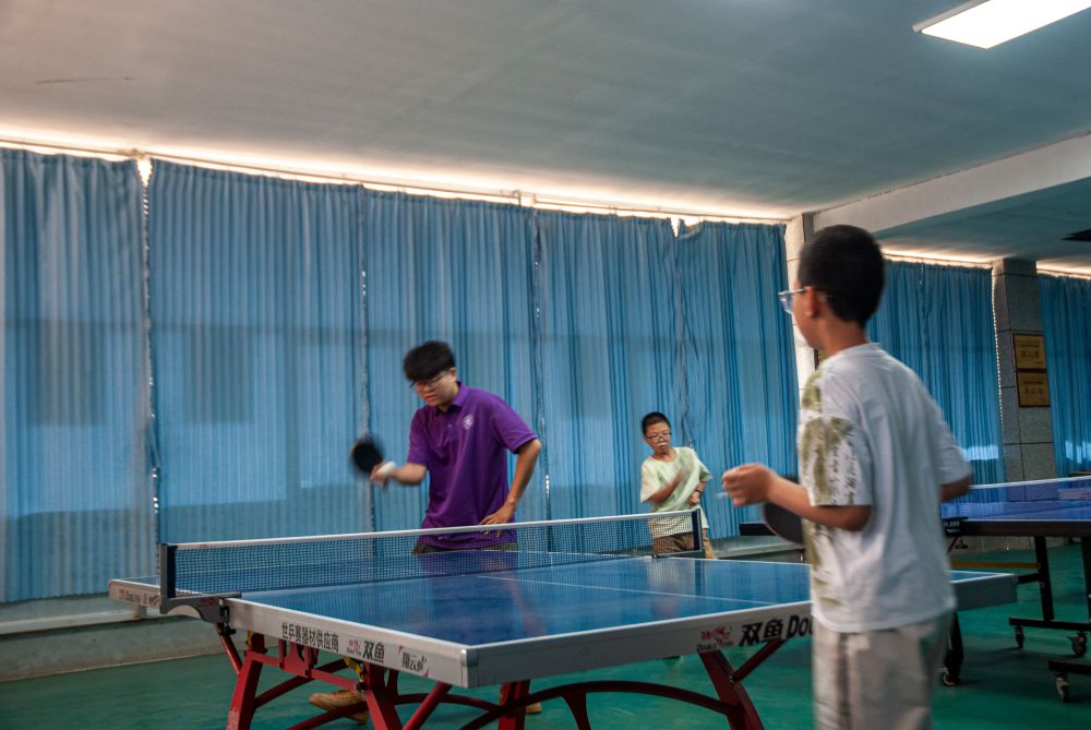 與此同時,作為學校的重點項目,兵乓球運動也在如火如荼地進行。實踐團成員通過手把手地指導和講解,不僅增強了孩子們對乒乓球運動的了解,也切實提高了小朋友們的乒乓球技術。