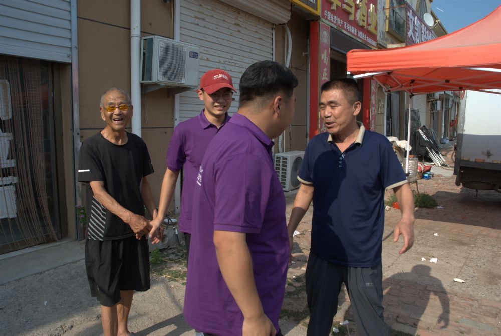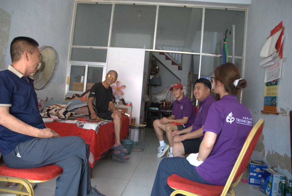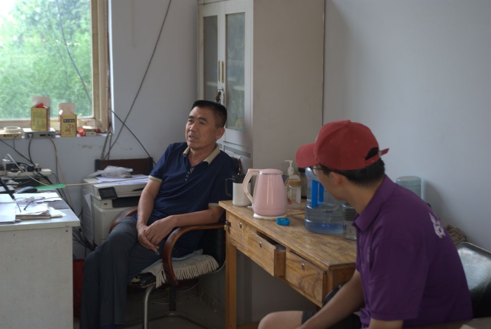 為了深入了解蔡中村的發展情況和基層工作開展狀況,實踐團首先來到蔡中村村委會拜訪王榮棠書記,與王書記進行了深入交流。王書記自2016年擔任村支部書記以來,始終堅持初心、恪守原則,他關注民生、體察民意,十年如一日致力于推動鄉村建設、促進教育進步、增進蔡中村人民福祉。同時,2016年也是山東理工大學愛之傳承暑期社會實踐團到蔡中村進行社會實踐的第一年,十年來,王書記對實踐團始終大力支持,為實踐團各項工作的有序開展提供了很多幫助;實踐團也為蔡中村的鄉村振興和教育進步貢獻了山理工的青春力量,這場獨屬于愛之傳承實踐團和蔡中村的“雙向奔赴”譜寫了鄉村振興的壯美畫卷。
