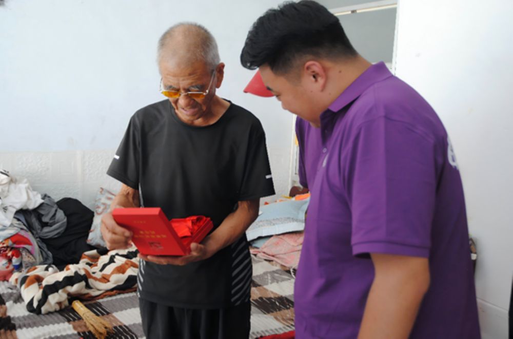 在交流過程中,王書記為我們特別介紹了一位對蔡中村發展影響巨大的老黨員,在王書記的帶領下,實踐團成員帶著慰問品前去拜訪。在表明來意后,老黨員對實踐團的拜訪十分高興,并且熱情高漲地為我們講述了他的革命歷程。這位老黨員1971年入黨,曾在東北當過四年六個月的鐵路兵,雖然沒參與過戰斗,但他為東北地區的建設與發展貢獻了最美好的青春年華。