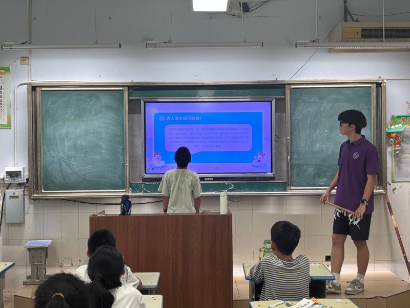 班會上,實踐團成員為大家講解了防溺水的安全知識,告訴同學們什么樣的水域不能去游泳和玩耍,引導同學們去正規(guī)的游泳場館。實踐團成員們?yōu)樾∨笥褌兘榻B了“六不一會”,即:不私自下水游泳;不擅自與他人結伴游泳;不在無家長或教師帶領的情況下游泳;不到無安全設施、無救援人員的水域游泳;不到不熟悉的水域游泳;不盲目下水施救;學會基本的自護、自救方法。同時,實踐團成員還結合真實案例,向同學們分享了多個溺水成功自救及科學施救的典型案例。通過實踐團成員們對于防溺水知識的講解以及對經典案例的介紹與分析,同學們對防溺水有了更深刻的理解和認識,為同學們的生命安全提供了更好保障。