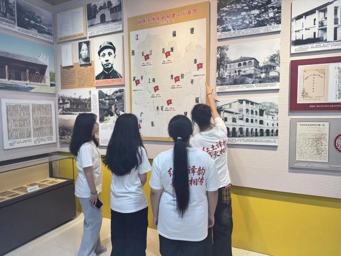近日,龍巖學院外國語學院學生第二黨支部組織學生黨員前往龍巖市鄧子恢紀念館、新四軍第二支隊紀念館、龍巖市博物館、中央蘇區(閩西)歷史博物館、中國沉缸紅曲酒博物館等地開展“紅土譯韻·薪火相傳”暑期社會實踐活動,以專業實踐賦能紅色文化與客家文化傳承。