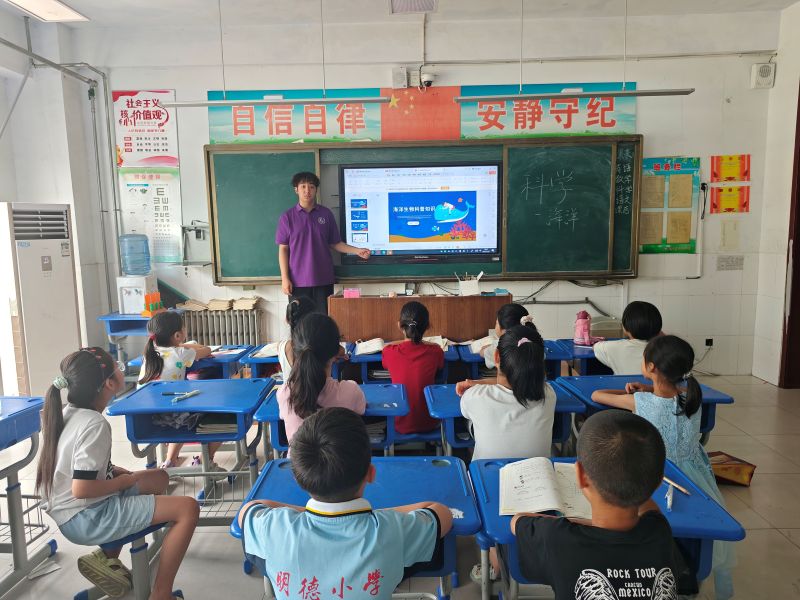為了激發小朋友們對科學的興趣,激發他們探索的欲望,拓展他們的知識體系,提升他們的綜合素養,7月23日,山東理工大學愛之傳承暑期社會實踐團開展海洋科普課程,實踐團成員為小朋友們精心準備了一場海洋之旅。這堂課上,每位小朋友都滿心期待與蔚藍海洋世界的邂逅。