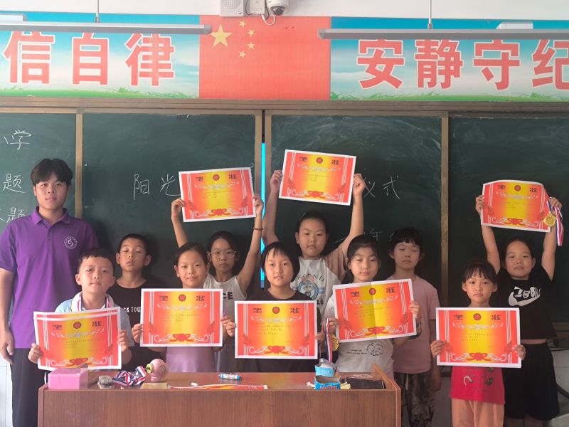 經(jīng)過了一上午的精彩比拼,當(dāng)天下午,舉行了趣味運(yùn)動(dòng)會(huì)的頒獎(jiǎng)儀式。在頒獎(jiǎng)儀式上,實(shí)踐團(tuán)成員們?yōu)槊恳粋(gè)取得優(yōu)異成績的同學(xué)們頒發(fā)獎(jiǎng)牌,特別值得一提的是,活動(dòng)還設(shè)立了"最佳拼搏獎(jiǎng)",表彰那些雖未獲獎(jiǎng)但表現(xiàn)突出的學(xué)生,極大的激發(fā)了同學(xué)們對于體育活動(dòng)的熱情,帶動(dòng)了校園體育氛圍的整體提升。