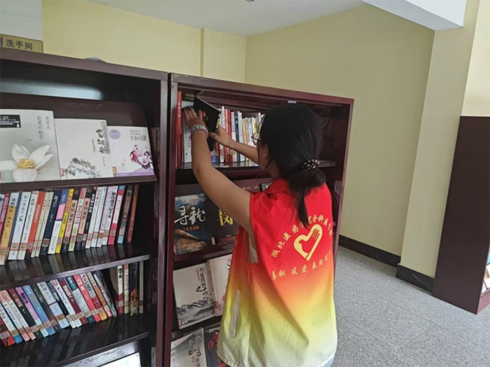 文化賦能激活社區治理末梢 與此同時,另一組志愿者駐守社區黨員群眾服務中心,充分發揮專業特長開展文化服務。隊員們運用文獻分類知識,歷時4小時完成600余冊圖書的整理編碼工作,并針對少兒讀物專區設計色彩分類標簽,顯著提升了圖書管理效率。服務過程中,志愿者們還主動為前來閱讀的青少年推薦書籍、輔導作業,讓圖書室成為社區文化傳播的溫暖驛站。"看到孩子們認真讀書的樣子,就是我們志愿服務最生動的注腳。"志愿者王同學如是說。