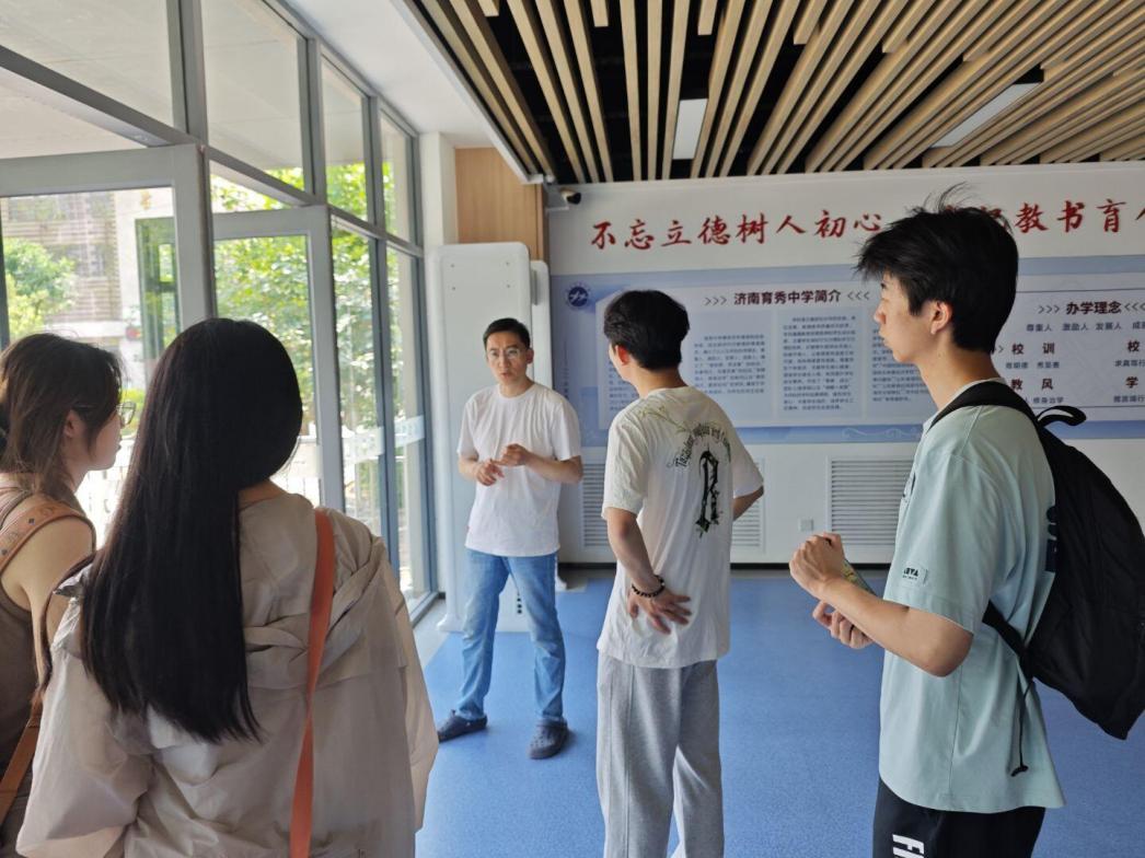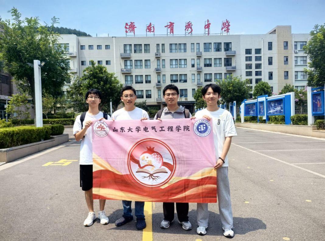 校園合影時,山東大學電氣工程學院的隊旗與濟南育秀中學背景相融,這一瞬間,是民族團結精神的生動定格。此次實踐,是 “九州尋薪火” 旅程中的重要一站,借交流讓民族團結理念在青少年心中扎根發芽。