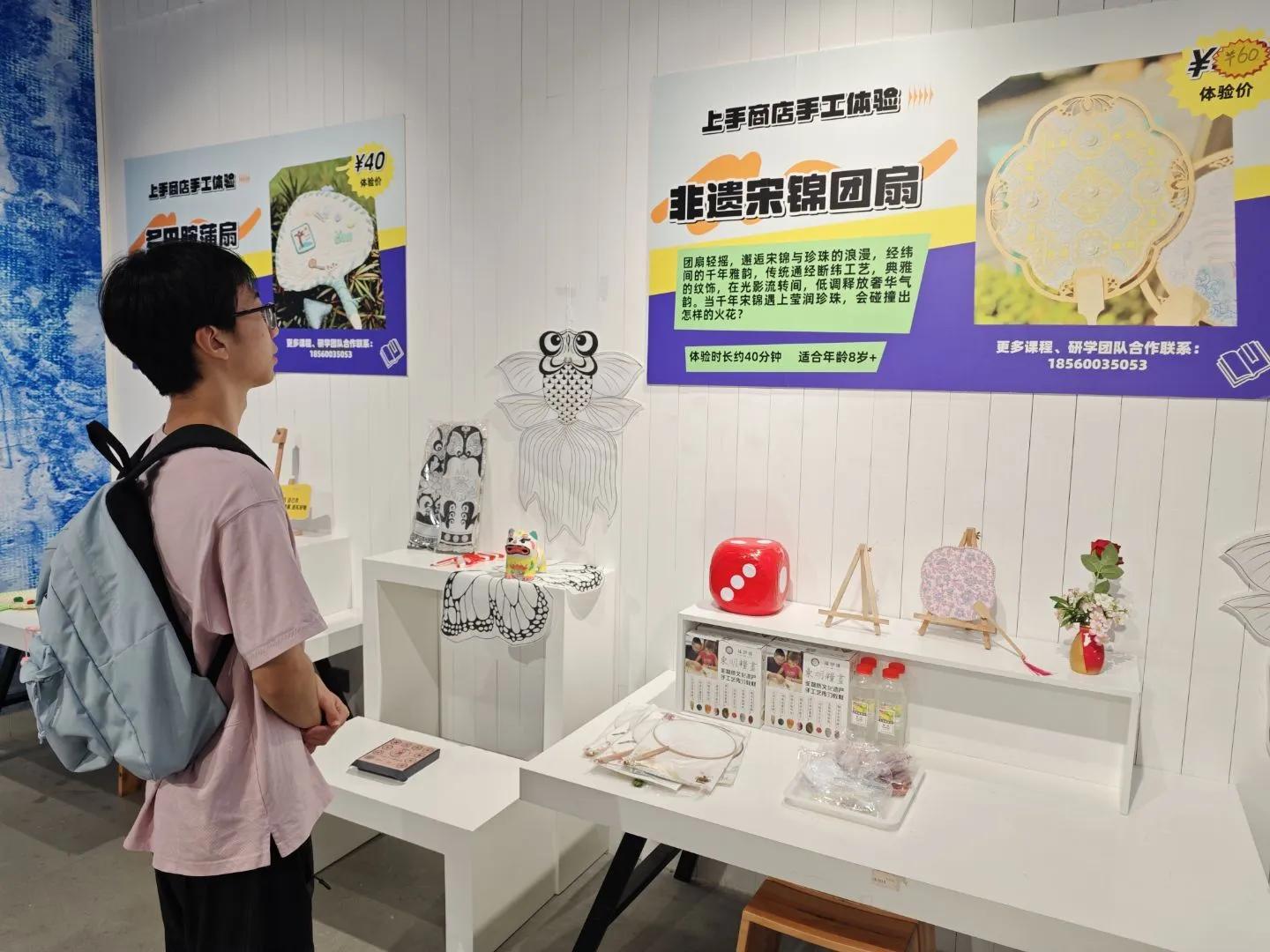 山東省手造展示體驗中心以傳統文化和現代技術為依托,展館內部規劃設置了四層空間,分別以“手造精品”“齊魯手造”“手造會展”“手造研學”為主題,通過琳瑯滿目的手造精品和豐富多彩的文化活動,體現中華傳統文化薪火相傳的賡續發展和生生不息的文化魅力。走進大廳,實踐隊成員被一系列精美的錫器作品吸引,這些作品不僅在設計上巧妙地融入了民族元素,更在材質和工藝上展現了現代創新。錫器細膩的紋理和獨特的民族圖案都是由濟南市的手工藝人精心制作而成,凝聚了他們的心血和對工藝的尊重。