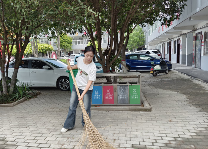 在社區環境整治方面,實踐團成員主要對社區院內的垃圾死角進行清理,對堆積的枯枝落葉進行集中清掃,將散落在角落的生活垃圾歸集到指定垃圾桶。使公共區域的環境面貌得到改善。