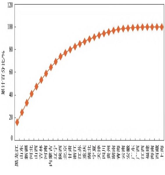 圖2 中國滑雪場(chǎng)空間分布曲線