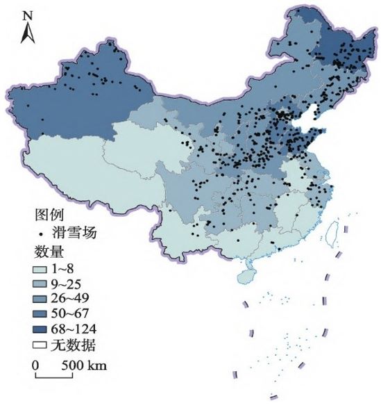 圖1 中國滑雪場(chǎng)空間分布圖