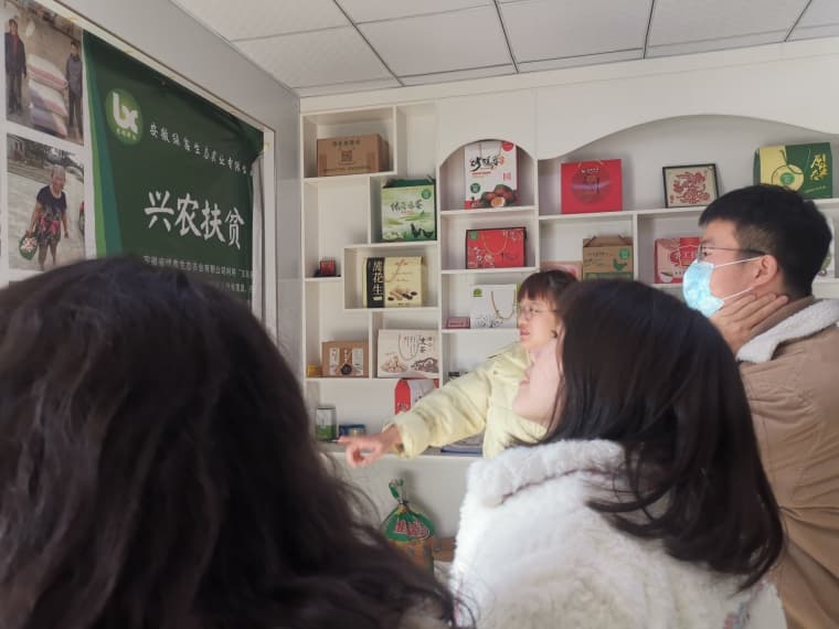 安徽省綠鑫生態農業有限公司宣傳部工作人員黃佩佩熱情接待了調研團成員,并組織成員參觀農糧驛站農產品加工園為調研員成員答疑解惑。黃佩佩解釋道:“我們企業在固鎮縣陡溝村起步,一開始收購陡溝村村民生產的農產品,進行加工包裝和銷售,為村民提供產品銷售平臺,最后形成了縣、鄉鎮、村三級電商幫扶以及農產品上行的電商模式,也帶動了整個固鎮縣的農產品的生產和銷售。”黃佩佩向調研團成員詳細介紹了企業的電商扶貧經驗:“我們通過打造自身的農產品整合、加工、標準、品牌和銷售體系,提升農業產業的規模、附加值和質量安全等等。”目前,農糧驛站已通過民企合作,實現了戶均增收2500余元/年。同時,《建立農糧驛站推動現代農業產業鏈發展——安徽固鎮縣農副產品產業與電商深度融合》成功入選“首屆全球110個最佳減貧案例、全國電商精準扶貧案例50佳”,為全球減貧、農村電商及扶貧經驗貢獻了固鎮力量。