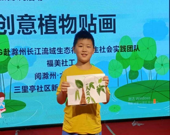 7.8日,是安徽師范大學生科院赴滁州G長江流域生態行社會實踐團隊在滁州實踐的最后一天,我們來到了三里亭社區,與小朋友們一起進行植物拼貼畫的制作。