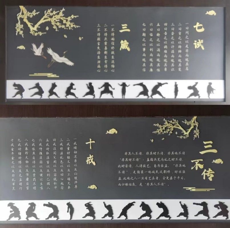 目光隨之看向左右兩側,墻上掛著“三箴”、“七試”、“三不傳”、“十誡”四個原則,引起調研隊員的長久駐足與深刻思考。在后續的采訪中,我們也著重問這四個原則為什么這么重要,萇紅軍先生說:“思想品德不行的人不傳,是不能讓他成為危害社會的人;地方土匪悍賊多的地方不傳,(如果傳授)這樣的話,會有更多土匪的出現;非其時不傳,比如戰亂的時候,他萬一加入敵方,還是會危害社會。總而言之,人品是最重要的。”