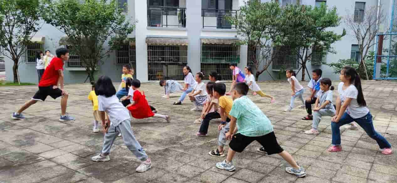 第二節課為音樂課,通過合唱、群舞等形式,進行美育教學。小朋友和團隊中來自漢族、布依族、瑤族的隊員們手拉手跳起當地苗族舞蹈,既富于美感,又讓人感受到了民族團結的魅力。第三節課為體育課,隊員們帶領小朋友到戶外進行體育活動,包括羽毛球、籃球、足球等,還進行了老鷹捉小雞大賽。熱火朝天的運動促進了孩子們與隊員之間的友誼,增強了孩子們的團隊合作意識。