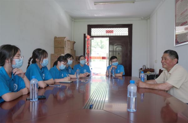 圖為團隊成員認真聽取簡書記介紹李橋村油茶產業狀況。中國青年網通訊員 張一馳 攝