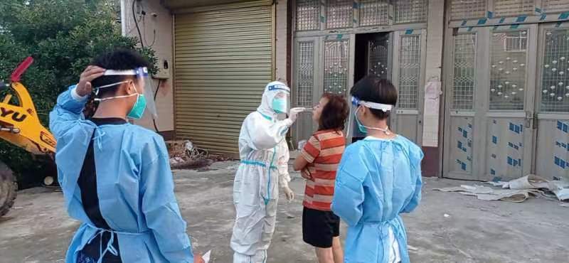 據實踐隊員所說 ,為了不影響村民們每天的日常生活,抗原工作在清晨就要開始了。實踐隊員和村里其他的志愿者要在天不亮的時候集合在一起,以小組的形式分區域進行抗原采樣。據村書記介紹,瓦四村分九個莊,最多的莊子有兩百多人,最少的也有一百出頭。全村一兩千人要在早上完成抗疫采樣,看似龐大的工作,在眾多志愿者的齊心協力下,也是可以輕松的順利完成。志愿者們穿著厚重的防護服,挨家挨戶的進行抗原采集,這也是對志愿者意志力的考驗。平均每位志愿者要做八十多人的抗原采樣,反反復復的棉簽采樣和溶液測定,確保了瓦四村村民們的安全。實踐隊員完成工作之后,防護服內部的衣服被汗濕,橡膠手套內的手被汗水泡的發白。再艱苦的工作,沒有人抱怨過,實踐隊員在這樣的工作中感受到了防疫工作的艱辛。