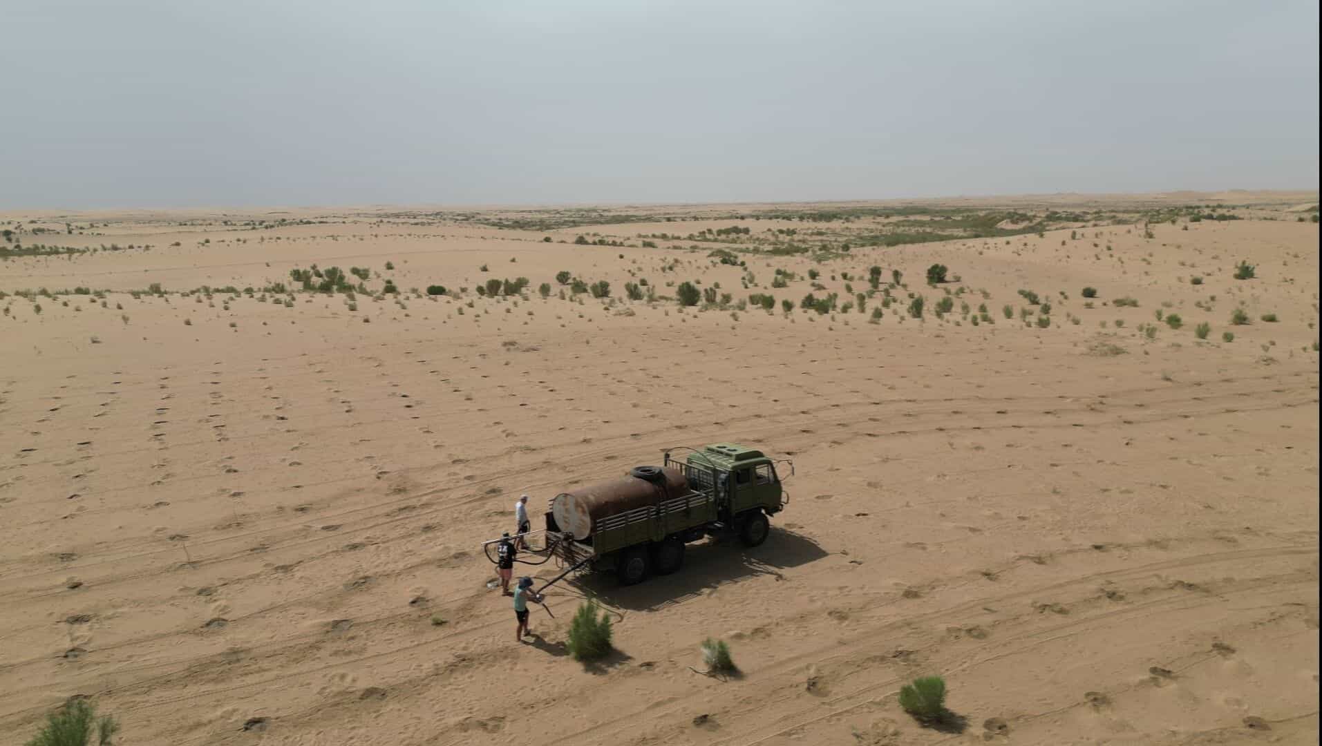 2022年7月5日,南京航空航天大學的同學們與上海交通大學的社會實踐隊員默契合作,互幫互助,共同為防沙治沙貢獻自己的力量。這是“綠勤行”實踐團隊進入騰格里沙漠的第九年。西北地區飽受風沙干旱困擾,民勤縣地靠騰格里沙漠也不例外。經過幾屆大學生的不懈努力,在騰格里沙漠種下了片片綠意。實踐隊員們與當地治沙人員一起在沙漠的滿天黃沙里創造出綠色奇跡。隊員們用自己的實際行動證明了“青春向黨,強國有我”的誓言。
