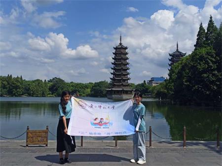 (圖為團隊在桂林市日月文化雙塔公調研結束后合影留念。)