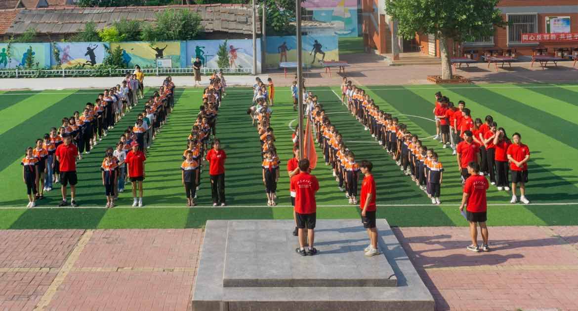 為弘揚愛國主義精神,深入學(xué)習(xí)貫徹習(xí)近平總書記在實踐中求真知、于探索中謀奮進(jìn)的號召,在“三下鄉(xiāng)”社會實踐中堅定信念,聽黨話、跟黨走,7月18日,山東理工大學(xué)交通與車輛工程學(xué)院“愛之傳承”暑期社會實踐團(tuán)在德州市武城縣明德小學(xué)舉行以“國旗下成長”為主題的升國旗儀式。此次升旗儀式由實踐團(tuán)成員董夢宇主持,明德小學(xué)校長王建秀、實踐團(tuán)全體成員以及明德小學(xué)全體學(xué)生參加。