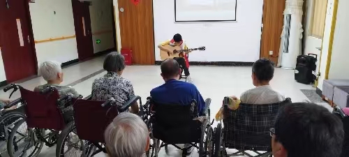 圖為團(tuán)隊(duì)成員在給老人表演節(jié)目。通訊員 魯李昂 攝